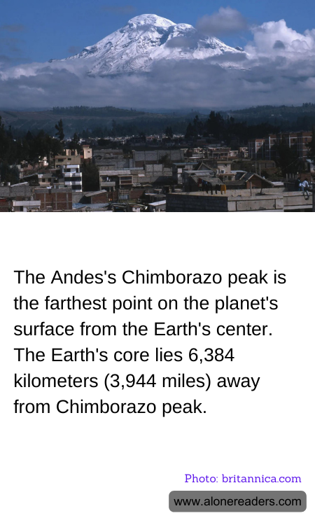 Chimborazo, a dormant volcano in the Ecuadorian Andes, holds a unique distinction in the geographical records of Earth—it stands as the farthest point from the Earth's center. This fact may come as a surprise since Mount Everest is commonly known as the world's highest point above sea level. However, due to the Earth's oblate spheroid shape, which causes the equatorial bulge, Chimborazo's peak, although not as high above sea level as Everest, is actually further from the center of the Earth.