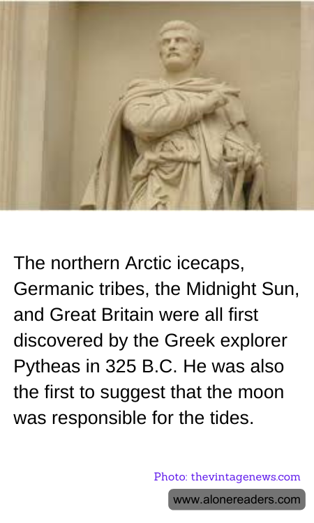 Equally important was Pytheas's contribution to natural science, particularly his observations regarding the tides. He was among the first to suggest that the moon played a crucial role in influencing the tides. This insight was a significant advance in natural philosophy, linking celestial and earthly phenomena in a way that would not be widely accepted or understood until much later in history.